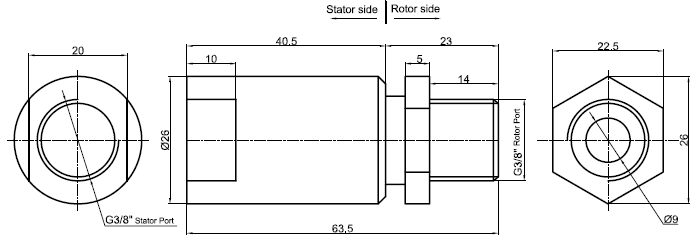 MK13A series single channel rotary joint, interface size G3 / 8 ", compact structure, light weight, corrosion resistance, stainless steel shaft and