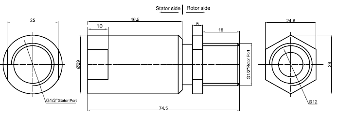 Mk14a series single channel rotary joint, interface size G1 / 2 ", compact structure, light weight, corrosion resistance, stainless steel shaft and