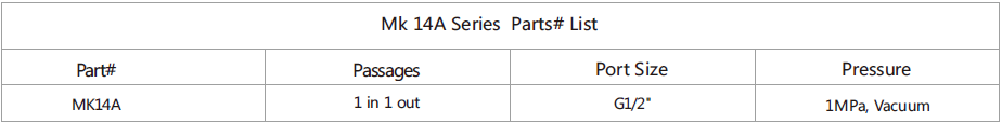 View more about MK Gas Rotary Union MK14A (One Passages Pneumatic Rotary Union) on main site