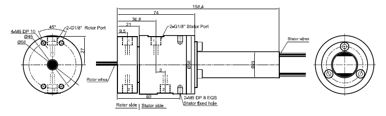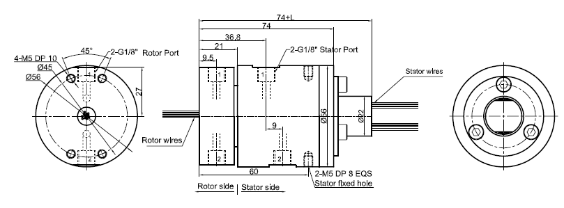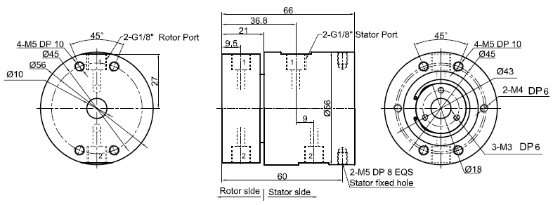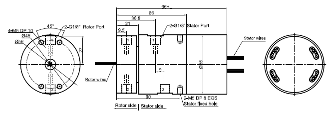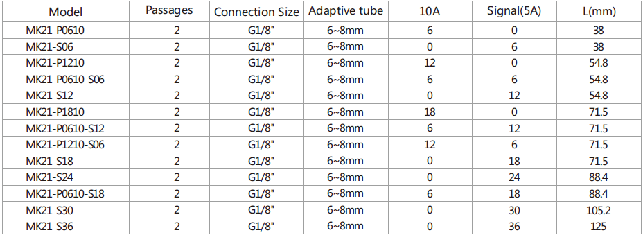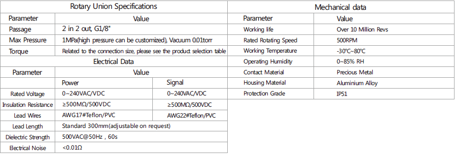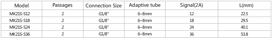 MK21 series is 2 passages Pneumatic Rotary Union (Can combine electric wires), with connection size G1/8",