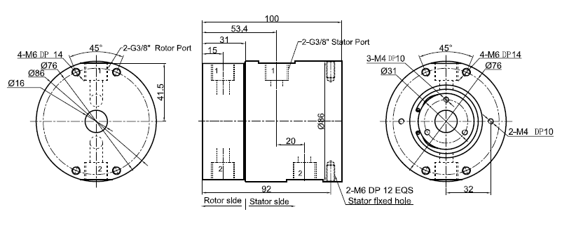 - Support 1/2/3/4/5/6/8/10/12/16/24 Pneumatic passages.