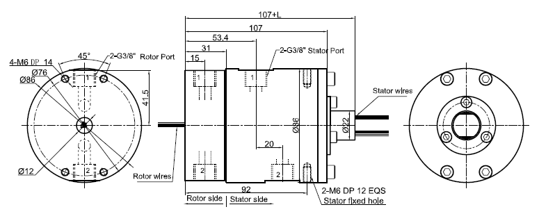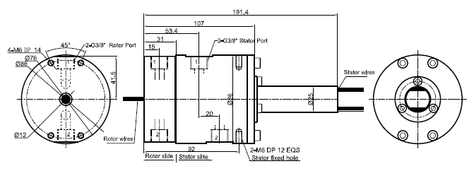 MK23 series is 2 passages Pneumatic Rotary Union (Can combine electric wires), with connection size G3/8",