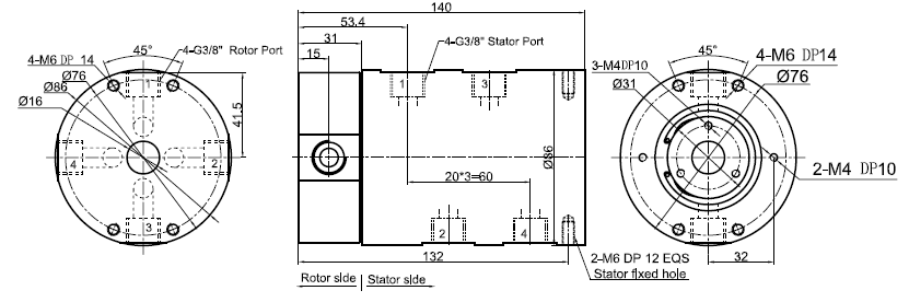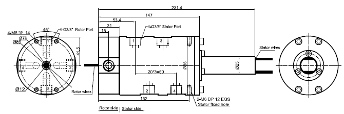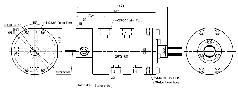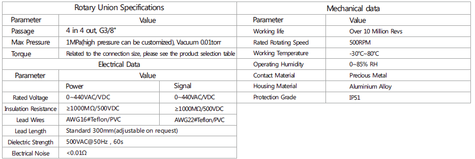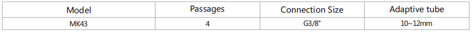MK43 series is 4 passages Pneumatic Rotary Union (Can combine electric wires), with connection size G3/8",