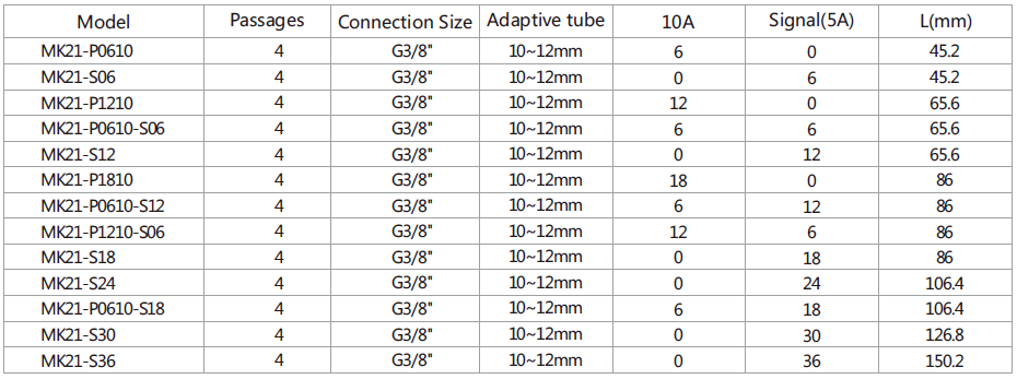 - Support 1/2/3/4/5/6/8/10/12/16/24 Pneumatic passages.