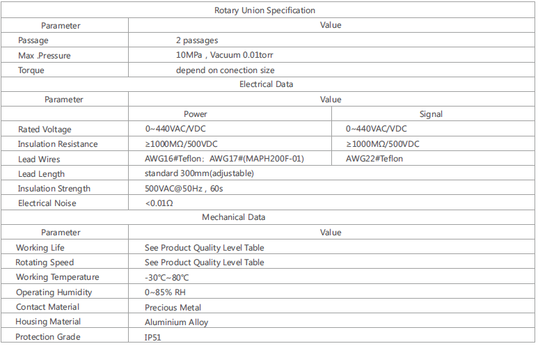 Two Passages Fluid Electrical Slip Ring (MAPH200F Series)