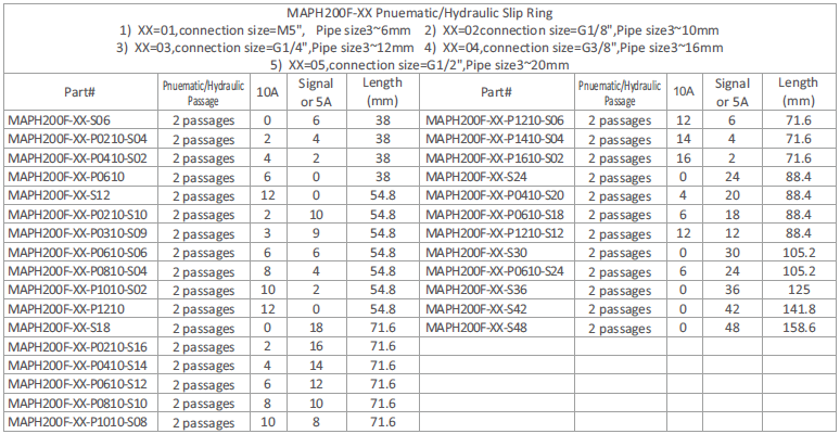 MAPH200F is 2 passages Pneumatic /Hydraulic + 2~96rings Electrical Slip Ring.