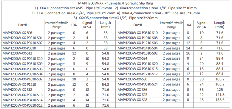 MAPH200W is 2 passages Pneumatic /Hydraulic + 2~96rings Electrical Slip Ring.