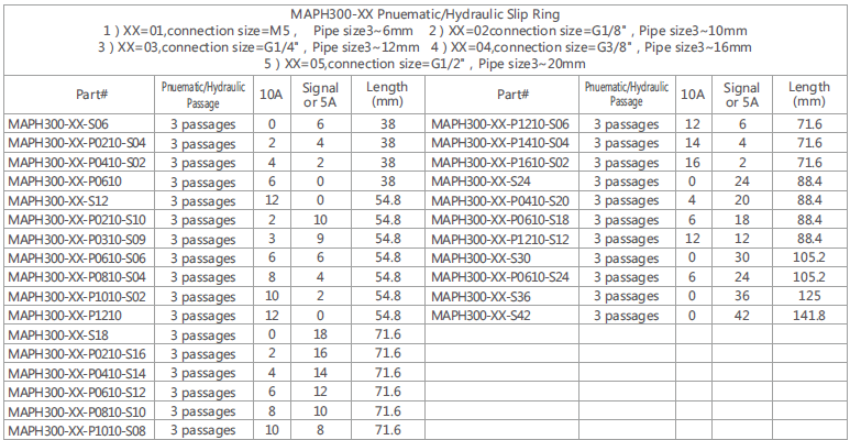 MAPH300 is 3 passages Pneumatic /Hydraulic + 2~96rings Electrical Slip Ring.
