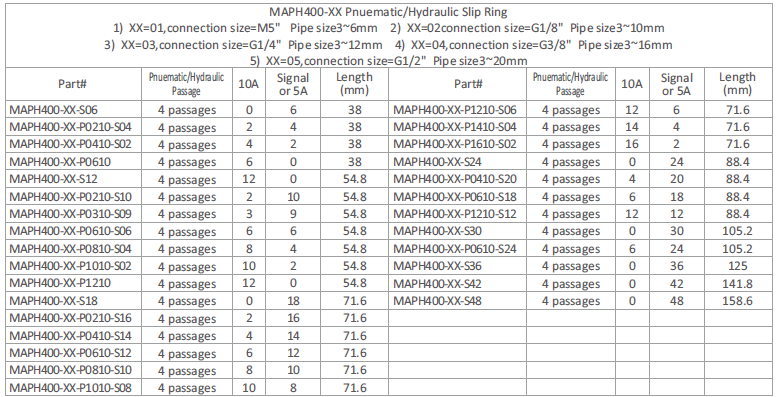 MAPH400 is 4 passages Pneumatic /Hydraulic + 2~96rings Electrical Slip Ring.