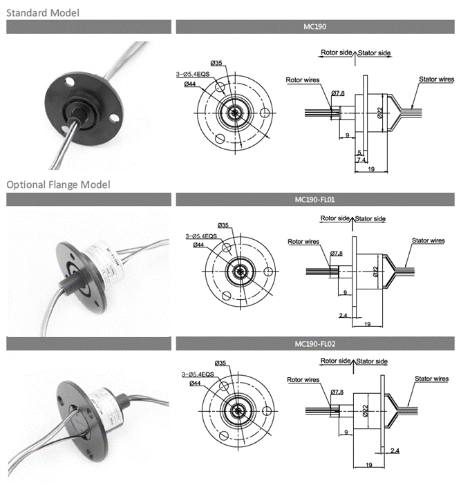 - MC series slip rings are small and compact with OD 22mm, with capsule style.