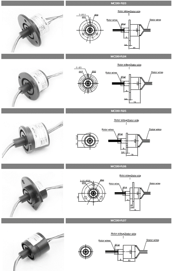 MC190 slip rings are small and compact with OD 22mm * L 19mm, with capsule style, standard, off-the-shelf.