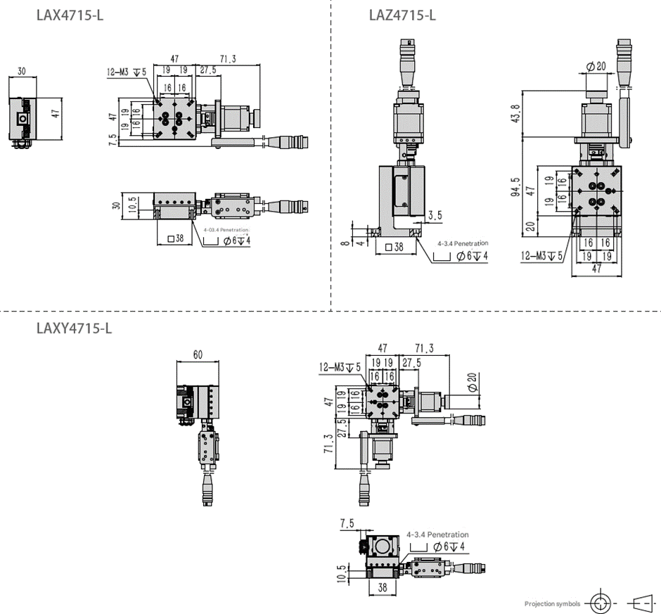 | Model | LAX4715-L/R | LAZ4715-L/R | LAXY4715-L/R |
